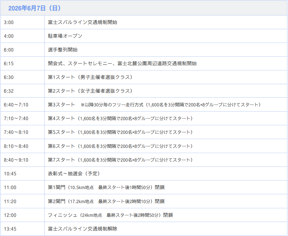◆各ブロックのスタート時間(富士ヒルクライム公式サイトから抜粋)
